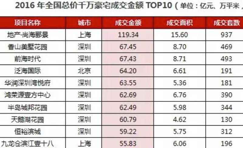 在新出炉的2016年全国千万级豪宅销售排行榜上,壹方中心以年成交62.69亿的成绩位列全国成交额排行榜前列,为鸿荣源取得销售金额之冠贡献了近32%的份额。