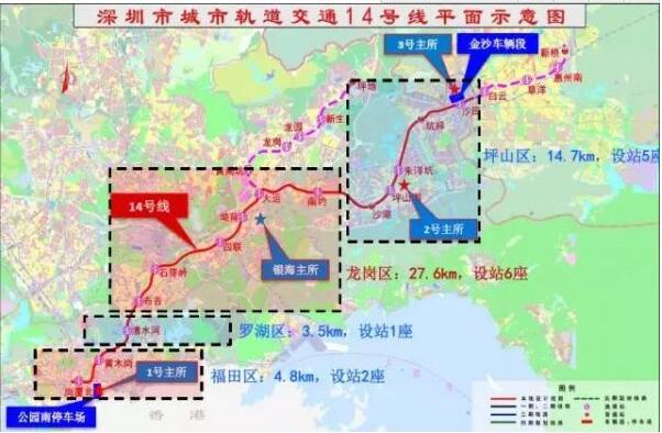 日前,地铁14号线最新线路规划曝光:线路起自福田中心区岗厦北枢纽,经罗湖区、龙岗区,止至坪山区沙田。地铁线路长度为50.6km(岗厦北—沙田)车站:设站14座(枢纽站3座,换乘站9座,标准站2座,平均站间距3.8km。