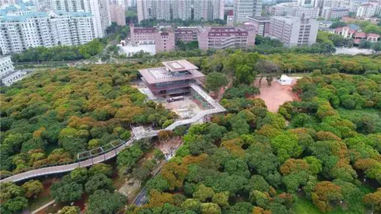 香蜜公园内还规划建设了空中栈道。近十米高的钢结构栈道在十多万平米的荔枝林梢间穿行而过,钢结构的栈道上平铺着褐色的长条形木板。