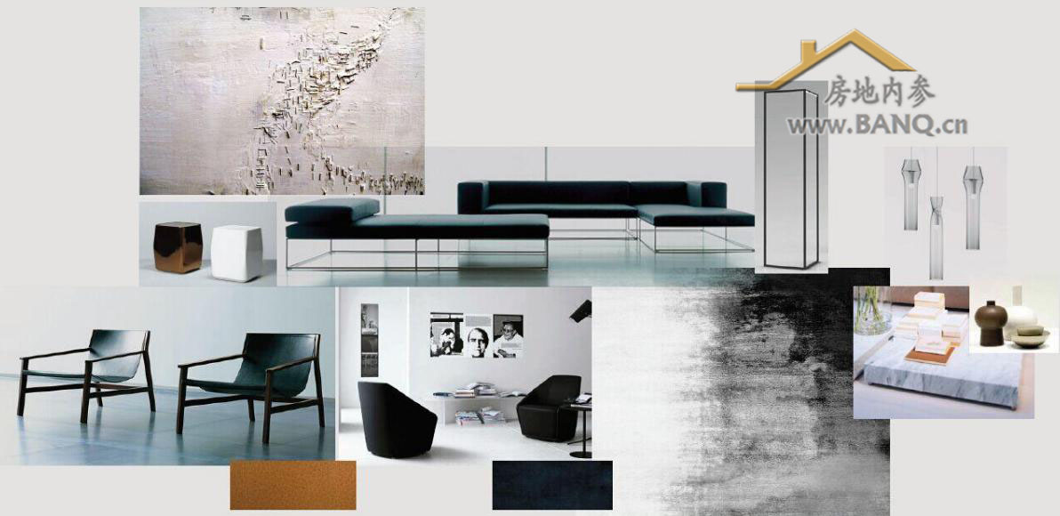 如整体色调采用冷色系列,或者较为朴素而带有质感的色彩,杜绝炫目颜色对生活的干扰;而北欧风格的家具,更能将凛冽与沉思效果提高,从而便于业主欣赏艺术或阅读书籍时,能够更好的沉静下心情;再者,通过鲜明的天然饰面材料,以其纹理构成装饰,其理性留白,同样达到悦府特有的精简美学效果。
