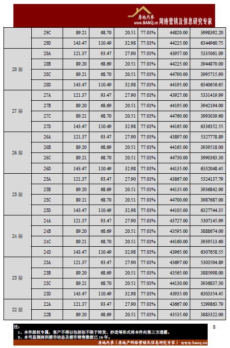 备注:以下项目的开盘价格表显示的是部分栋数或楼层,意向获得完整价格表的请咨询我司市场热线:13924647913 孙先生 。