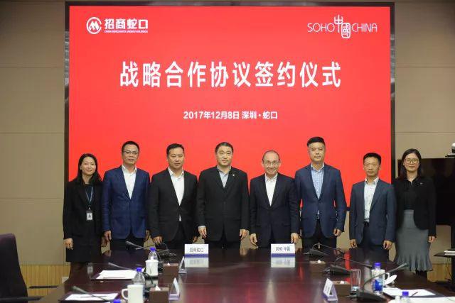 12月8日,招商蛇口发布消息,与SOHO中国签署战略合作协议,双方在商务战略、产业链建设、联合办公等方面联合,实现资源共享、开拓创新、转型升级、多赢合作。