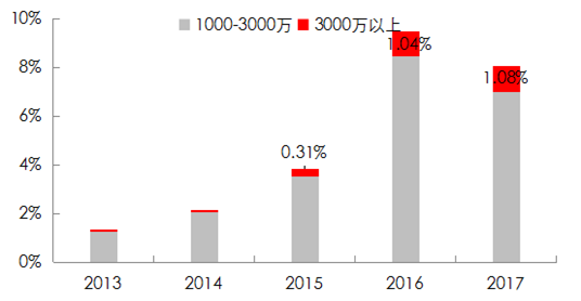深圳2013-2017千万以上豪宅成交占比(by深圳中原研究中心)