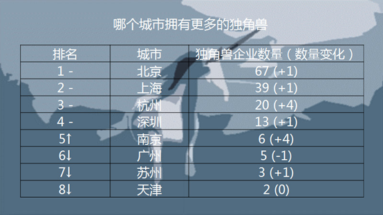 根据吴晓波频道的解读,2013年,即“独角兽”概念被提出那年,全球75%的独角兽公司来自美国,而截至2017年9月的数据,美国公司的占比已经降至41%,中国则以36%位居全球第二,其中北上广深的独角兽数量增长最为显著。