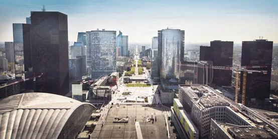 据了解,拉·德芳斯的空中步行通道系统面积达到了约67万平方米,主要建筑全部建造在一个高度超过十米、巨大的步行架空平台之上,地铁、区域快线、火车和公路则分布在下方的不同层面,形成了一个巨大的立体交通系统。