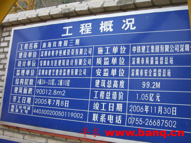 “蛇口·南海玫瑰花园3期”图片之:项目的工程牌