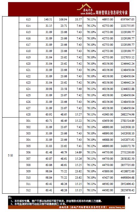 宝安区会展湾南岸广场(A 区)1 栋A、B 座商务公寓开盘备案价格表