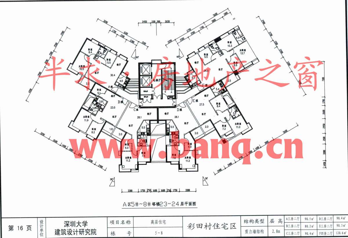 彩田村住宅区9栋塔楼2-17、23-24层平面图: