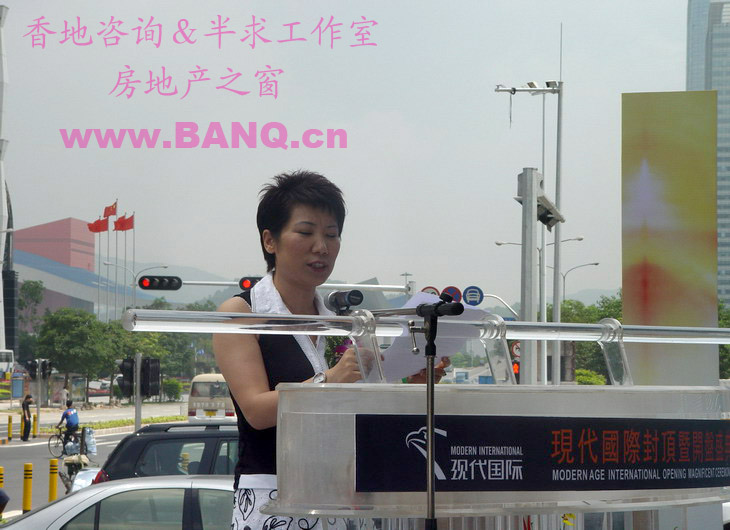 2007年5月15日上午10:30,“现代国际封顶暨开盘典礼”举行。来自深圳市人大,市政协、福田区有关领导同志以及项目的合作单位约200多人共同见证了现代国际这一历史时刻。