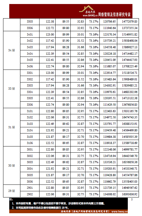 今天,本司发布南山区天鹅湖花园(三期)A~D 座住宅开盘备案价格表的节录,未来遇有新盘价格表,本司都将发布节录,供大家参考。