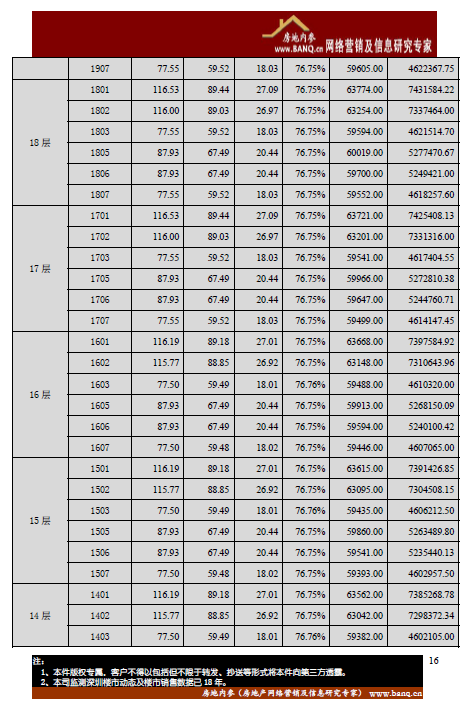 今天,本司发布龙华区壹成未来花园1 栋B~F 座住宅开盘备案价格表的节录,未来遇有新盘价格表,本司都将发布节录,供大家参考。