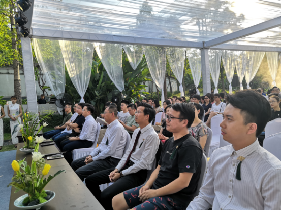 别开生面的开场后,中海汤泉营销负责人黄俊雄先生上台致辞,他表示,中海地产砥砺40载布局72城,素来以“拓展幸福空间,创造无限价值”打造中海独有的人居品质。中海汤泉从初心到图纸再到美轮美奂的艺术之作,承载了中海地产一路以来的匠心精神,三期悦湖院墅通过园林、立面、选材、礼序、户型等五个方面的精心打造,在当下这个天时地利人和之时,得以正式面世,绝尘绽放。