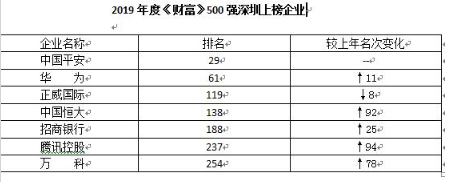 2019年《财富》世界500强最新榜单上,深圳拥有7家世界500强企业,包括中国平安、华为、正威国际、恒大、招商银行、腾讯、万科,没有“中字头”,没有“国家队”。