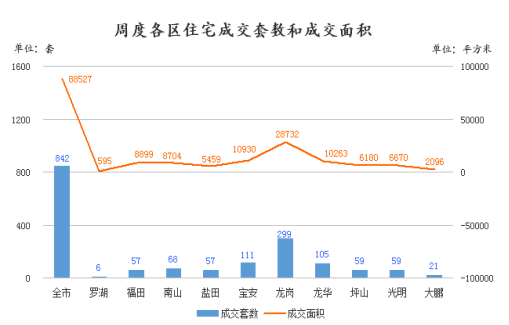 第一名龙岗区,成交299套,成交面积为28732㎡;