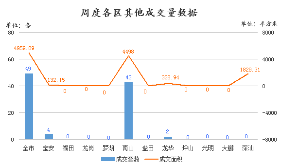 其他,成交49套,环比上涨113.04%;成交面积4959.09㎡,环比上涨414.35%。