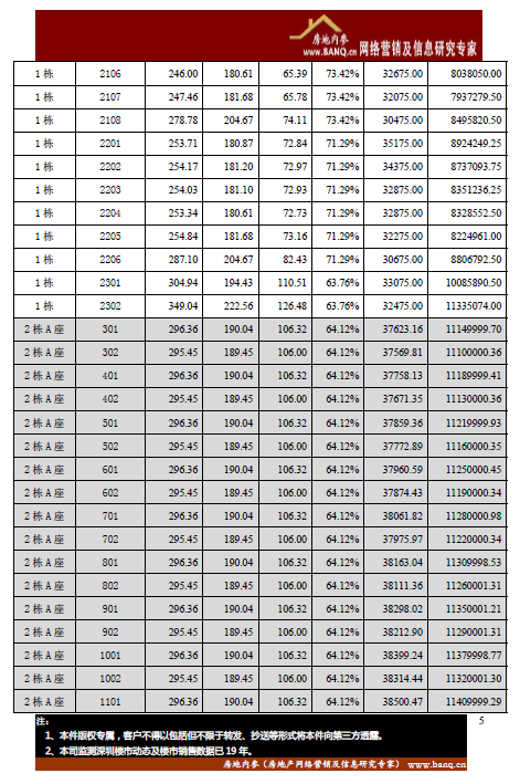 备注:以下项目的开盘价格表显示的是部分栋数或楼层。