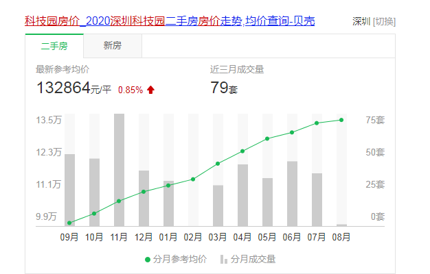 2004年,南山区还是深圳主城区的价格洼地,房价5225元/㎡起(数据来源:三三房研社),如今16年过去了,南山区二手房均价已经上升到了92741元/㎡(数据来源:房天下),16年涨幅近18倍。其中高新区二手房价格约为13万元/㎡(数据来源:贝壳找房),如果按照2019年6月深圳软件工程师平均工资16952元(数据来源:中国专业IT社区CSDN)计算,在高新区买一套95㎡的二手房需要62年。临近高新区的西丽、宝中等片区,房价也已经在10万元一平米左右。