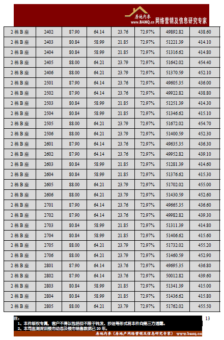 备注:以下项目的开盘价格表显示的是部分栋数或楼层。
