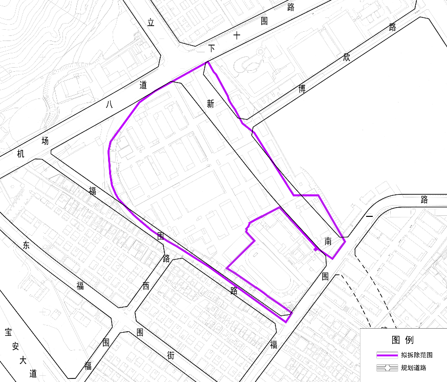 宝安区福永街道福围第二工业区城市更新单元位于宝安区福永街道下十围路与立新南路交汇处南侧,拟拆除范围用地面积为63361㎡。