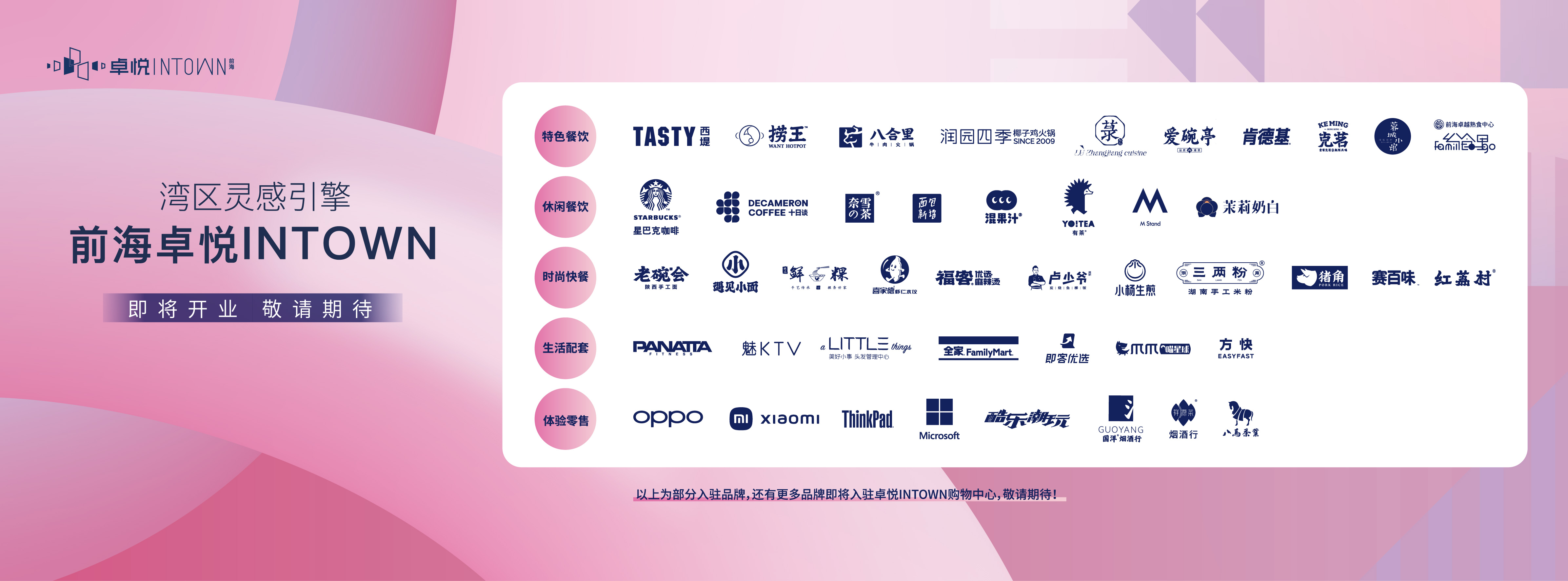 当前卓悦INTOWN签约品牌包括:三大主力店为轻奢健身主义-普拉达健身、新晋年轻人狂欢地-魅KTV、团餐界米其林-纷食里熟食中心,汇聚一线网红茶饮如星巴克、MSTAND、奈雪的茶、ARTEASG、有茶、混果汁等,高端商务宴请-菉雅苑、高端日料-鮨岚、四叶寿司旗下黑旨烧肉等惊艳亮相。