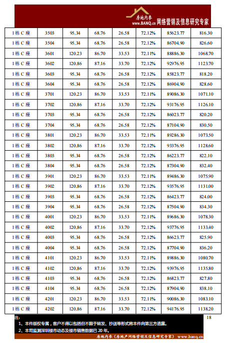 宝安区玺玥华府 1 栋 A~C 座住宅开盘备案价格表