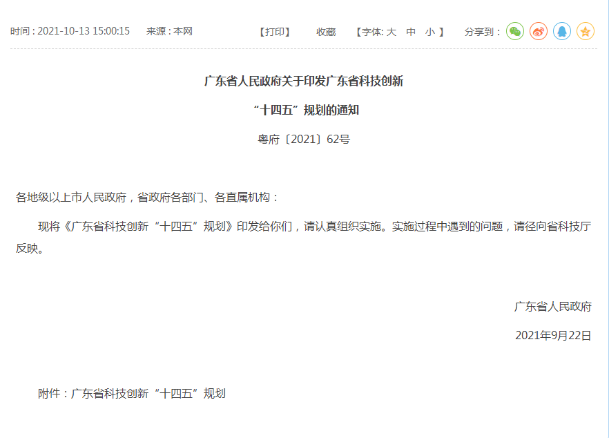 10月13日,《广东省科技创新“十四五”规划》(以下简称《规划》)正式印发实施,《规划》中明确提出要依托广州科学城、光明科学城、松山湖科学城、西丽湖国际科教城等重点创新平台,建设“广深港”科技创新走廊,创新广深港科技合作机制和模式。