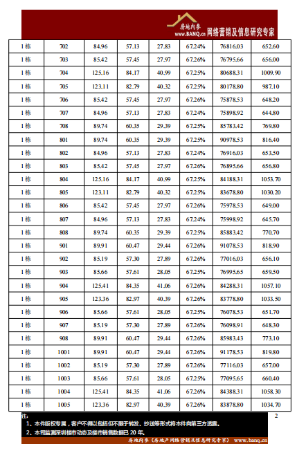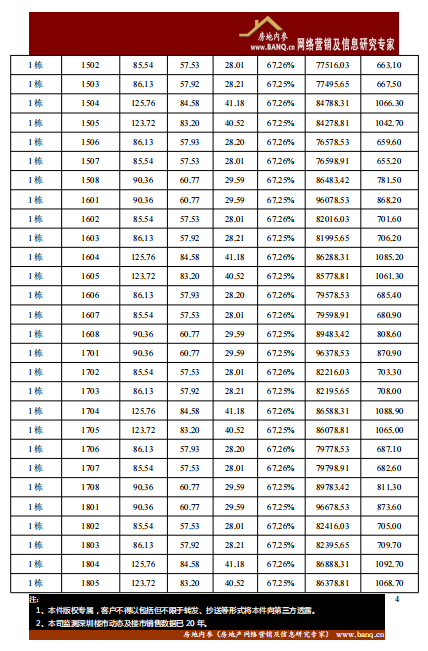 备注:以下项目的开盘价格表显示的是部分栋数或楼层。