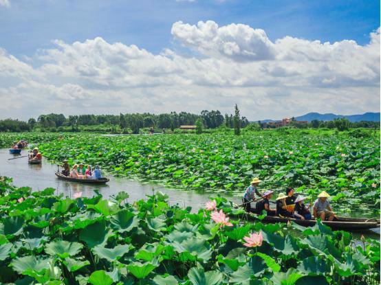 在古劳,洋溢着岭南独有的围墩人家的生活场景。盛夏时接天连叶的荷花肆意生长,荷香飘逸,游客汹涌而至,只为一睹荷花盛景。