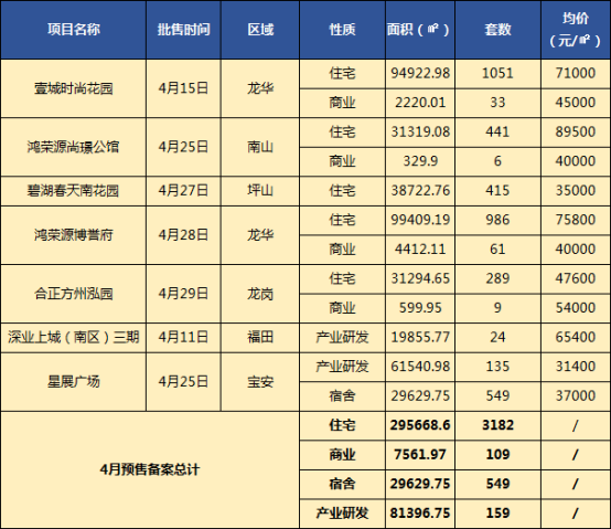 4月合计7个项目获批预售,其中5个住宅项目,住宅批售面积29.5万平米,环比上升172.54%。