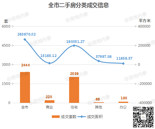 ♢总成交量方面:二手房成交2444套,环比↓9.01%,其中住宅成2039套,环比↓9.01%。