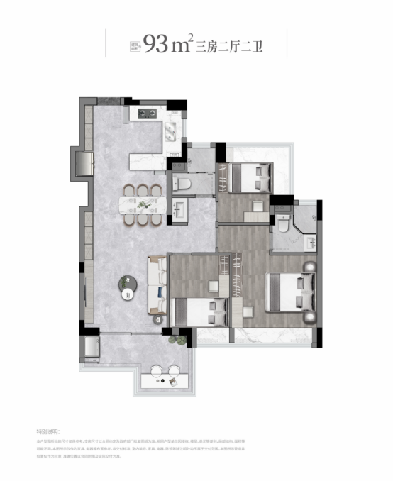 云奕府首期主推建面约85-93㎡的3房产品,入户玄关可以满足居家收纳空间,让归家入门时更愉悦。