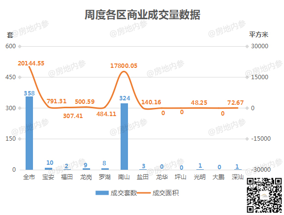 ②商业,成交358套,环比↓76.09%;成交面积20144.55㎡,环比↓73.56%;