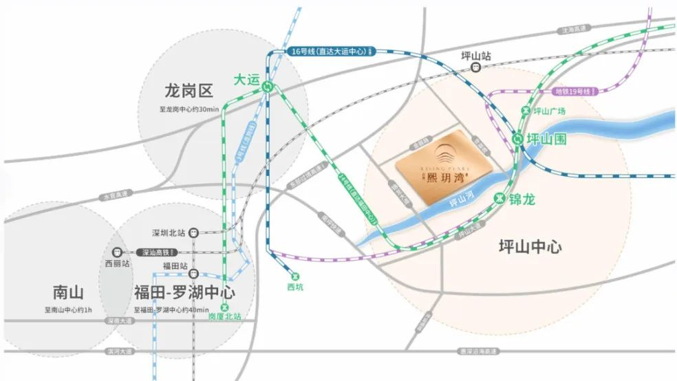 以位于坪山门户封面地段的君胜熙玥湾为例,与之相邻约800米的“沙湖整村统筹项目”,规划用地高达362.95万㎡,包含70万㎡商业及写字楼,相当于3个深圳万象天地,未来将建成坪山的商业商务人居中心,相当于自配一个巨无霸的综合配套,价值得以更多辐射。