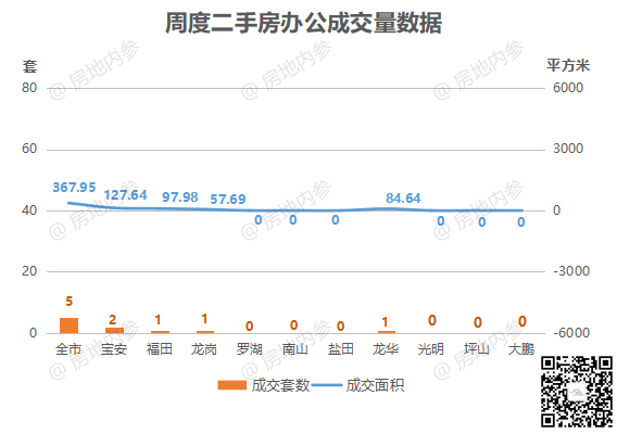 二手房办公成交方面,全市成交5套,成交量前三区域分别是: