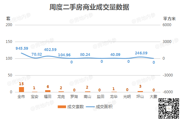 二手房商业成交方面,全市成交15套,成交量前三区域分别是: