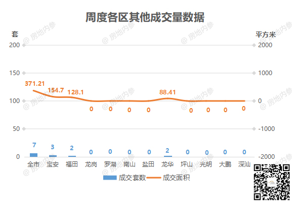 ④其他,成交7套,环比↓41.67%;成交面积371.21㎡,环比↓60.50%。