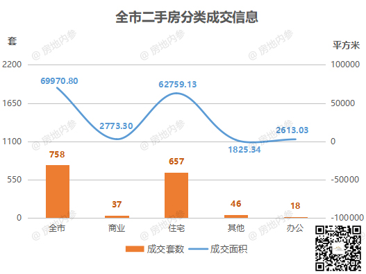 ♢总成交量:二手房成交758套,环比↑11.96%,其中住宅成交657套,环比↑17.95%