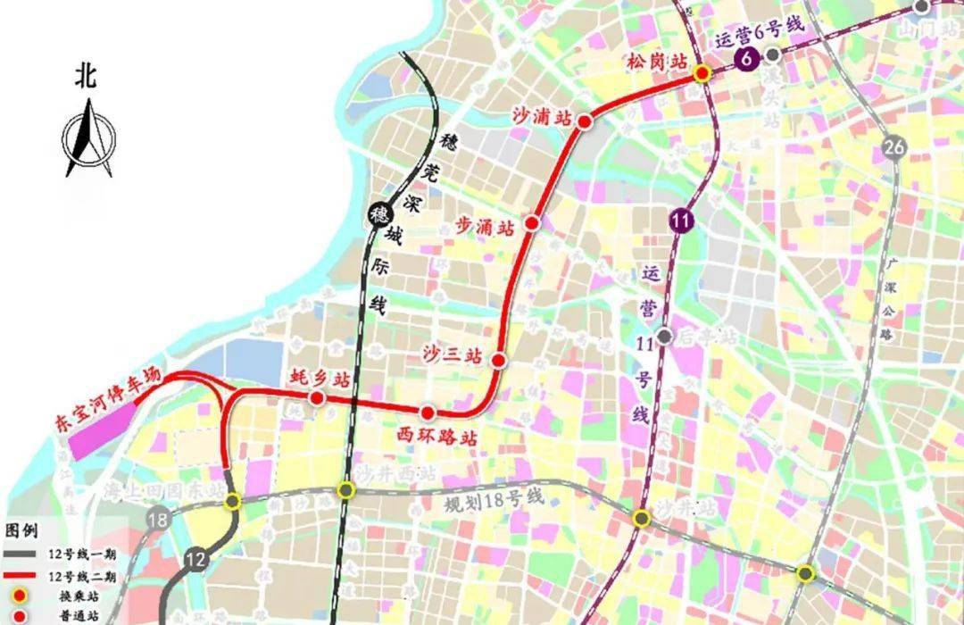 12号线二期起自海上田园东站,终至松岗站,线路全长约8公里,设站6座,全线采用地下敷设方式。