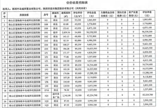 从公布的评估报告显示,该83套拍卖房并非住宅,用途为商业、超市、餐饮,该拍卖标的总建面约23344.19平方米,市场估值约11.56亿元。