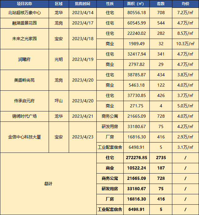 2023年16期(04月17日~04月23日),深圳全市一二手商品房成交简要: