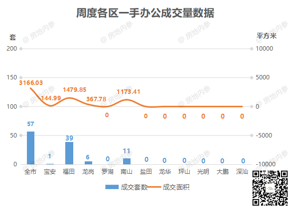 ③办公,成交57套,环比↑67.65%;成交面积3166.03㎡,环比↓43.89%;
