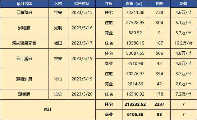 ■本周6个项目获批预售,住宅批售面积总计21.3万平米