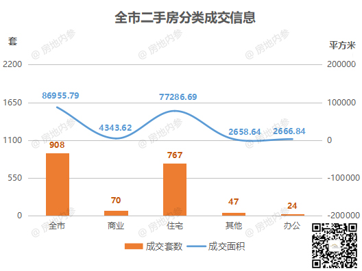 ♢总成交量:二手房成交908套,环比↑5.09%,其中住宅成交767套,环比↑7.72%
