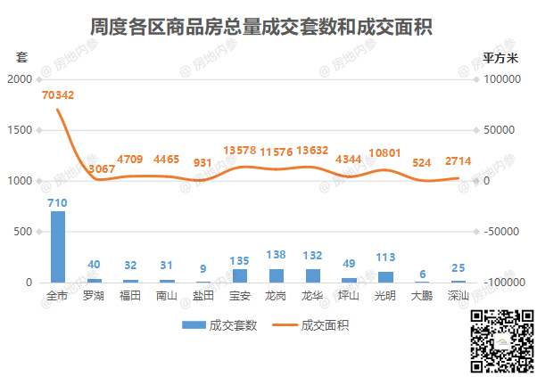 据房地内参监测,上周深圳楼市成交数据如下: