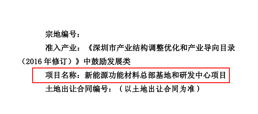 根据《项目产业发展监管协议》,地块将用于建设新能源功能材料总部基地和研发中心项目。
