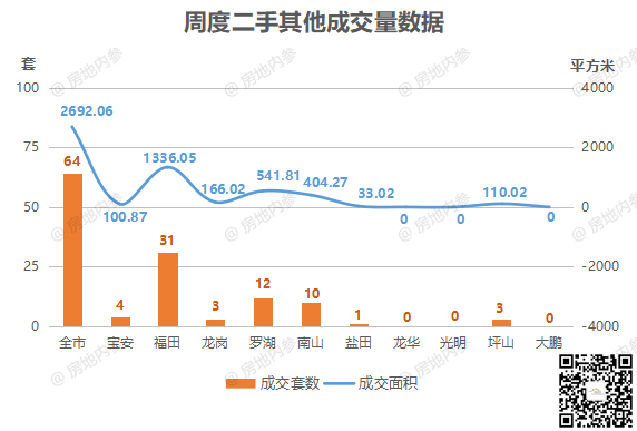 二手房其他成交方面,全市成交64套,成交量前三区域分别是: