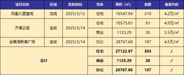 ■本周3个项目获批预售,住宅批售面积总计2.7万平米