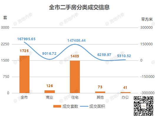 ♢总成交量:二手房成交1725套,环比↓4.22%,其中住宅成交1485套,环比↓3.13%