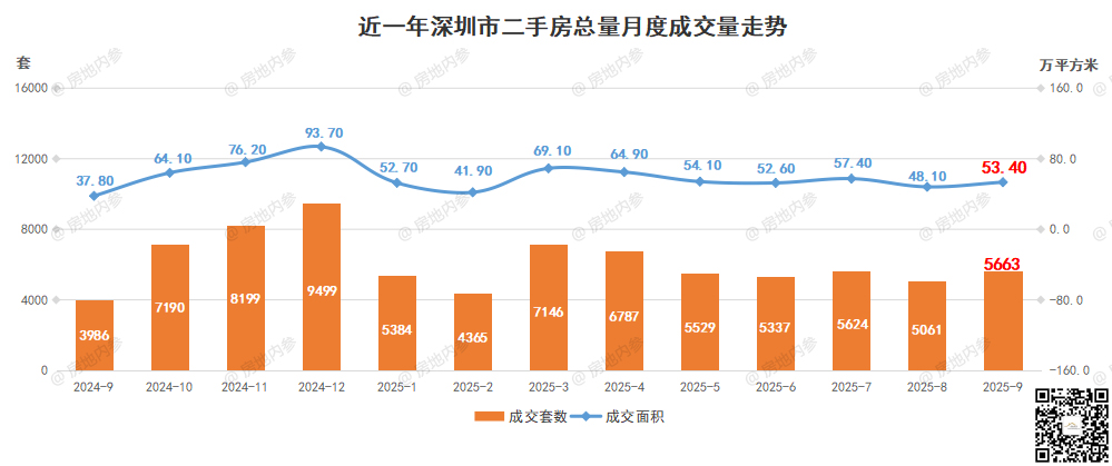 2025年9月,深圳全市一二手商品房成交简要: