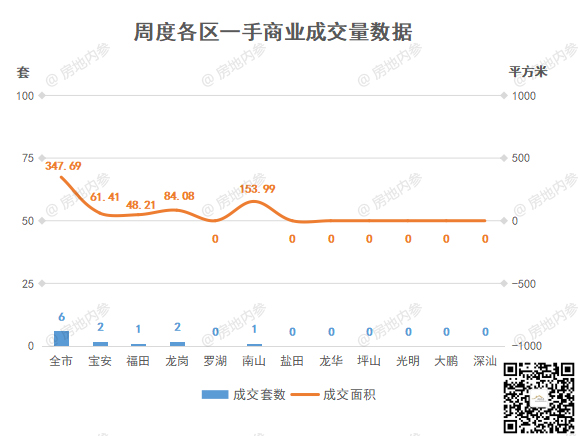 ②商业,成交6套,环比↓89.29%;成交面积347.69㎡,环比↓94.39%;